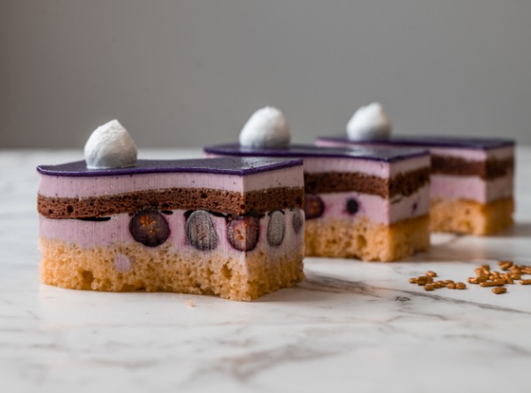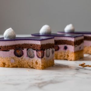 Layered sponge, cheese and bluberry compote. Delicious, soft and gluten free.