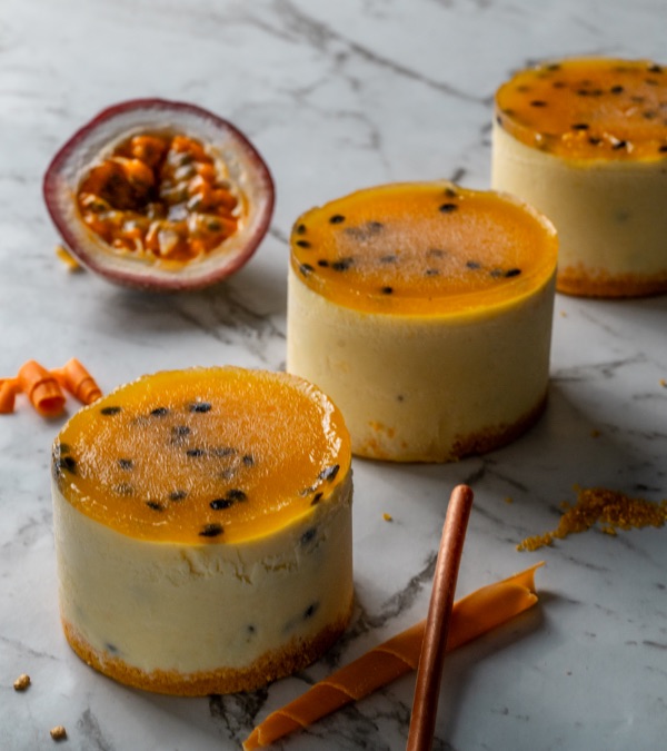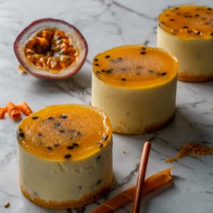 A chilled, creamy cheesecake topped and infused with passionfruit compote.