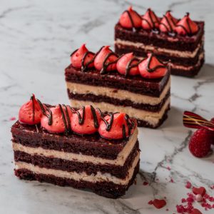 A classic red velvet sponge and chocolate cake with a creamy mascarpone twist.